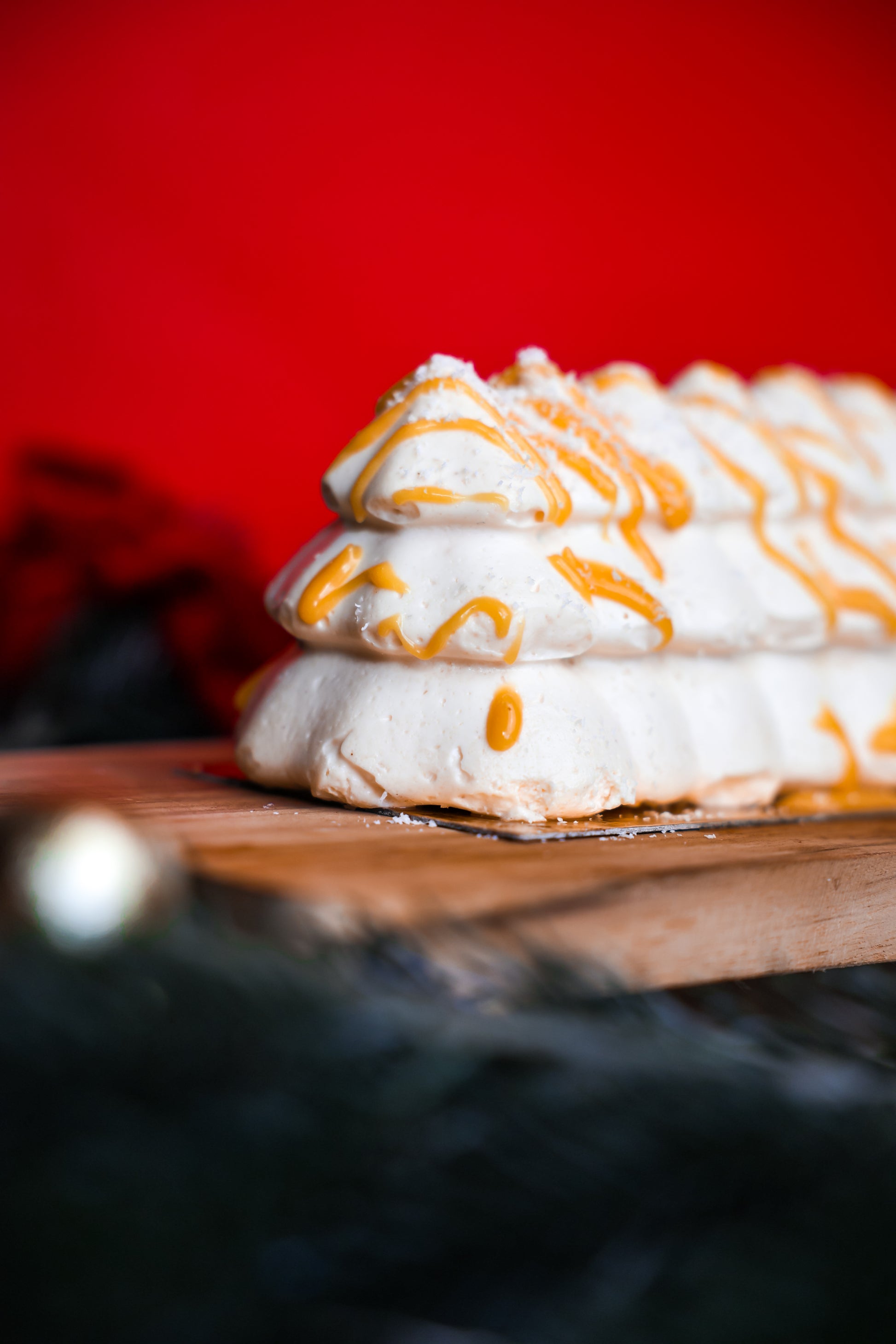 Mousse tiramisu légère à la noix de coco Rapée,d’un confit mangue passion avec une brunoise de mangue, et d’un crémeux mangue.